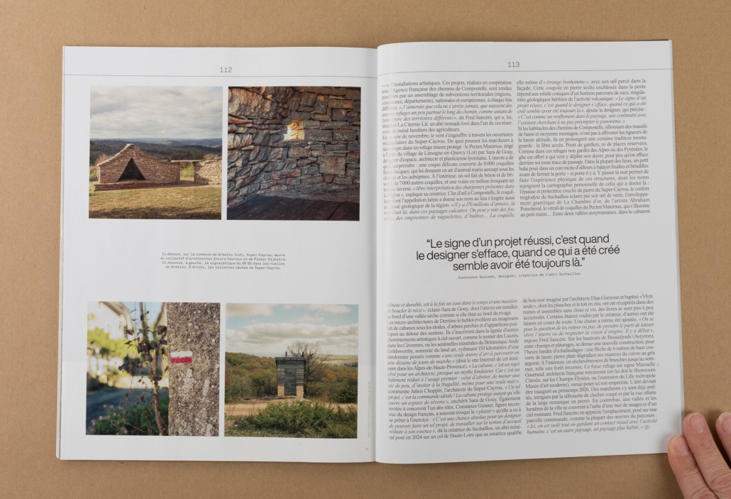 Article sur les œuvres de fenêtre sur le paysage. Double page photos du refuge Pecten Maximus