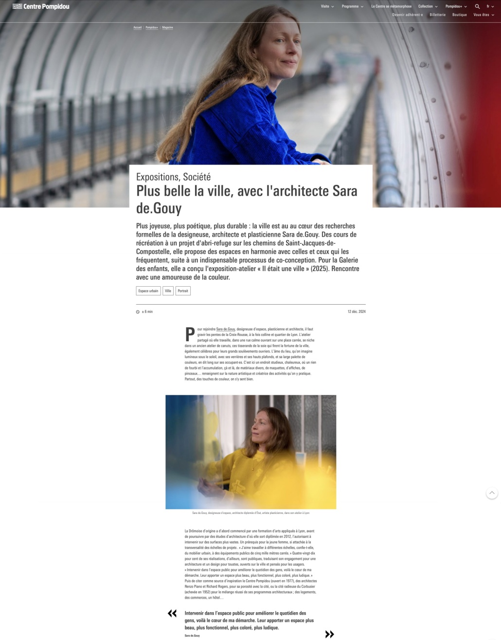Portrait publié dans le magazine du Centre Pompidou. «Plus belle la ville, avec l’architecte Sara de.Gouy»