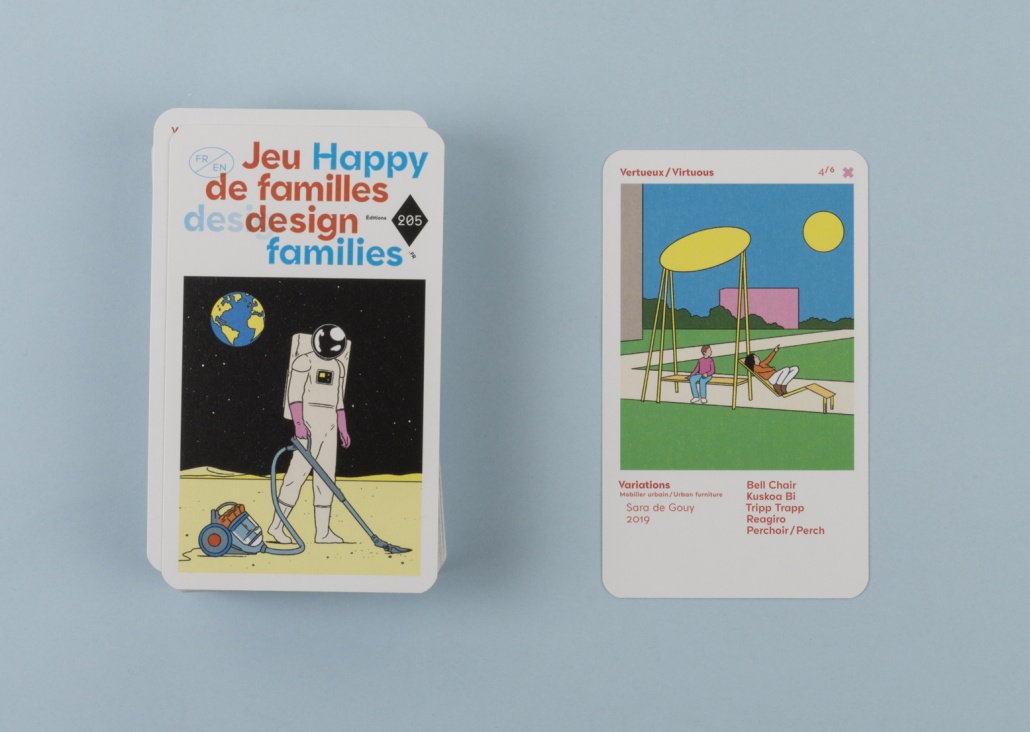 Tout le monde connaît le jeu de 7 familles. Voici un jeu de familles pour découvrir le design en s’amusant! Ce jeu est l’occasion de se familiariser, d’apprendre ou de comprendre le design, ses champs d’application et la place qu’il occupe dans notre quotidien…